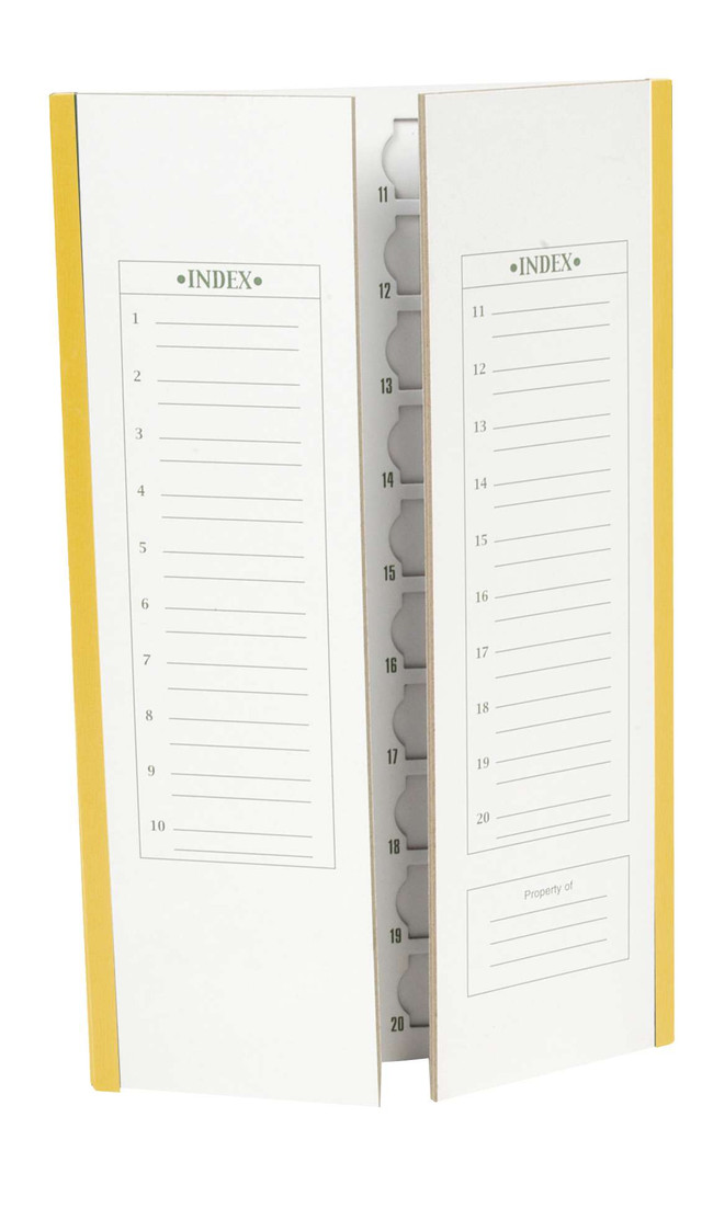 - Index on the front cover corresponds with the number grid inside for identification