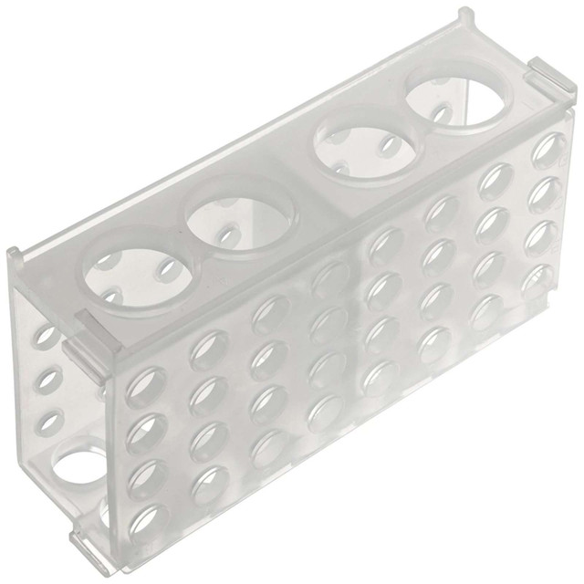 The 4-Way Tube Rack features a unique well design that allows the rack to hold a variety of different-sized tubes up to 50 mL. Its robust construction ensures long-term durability, while the brightly colored options aid in quick identification and organization. Each tube rack segment is interlockable with the others, offering the ability to create custom configurations of whatever tube size/capacity you need.