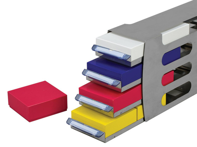 - Constructed of corrosion-resistant stainless steel with four drawers to hold 16 boxes