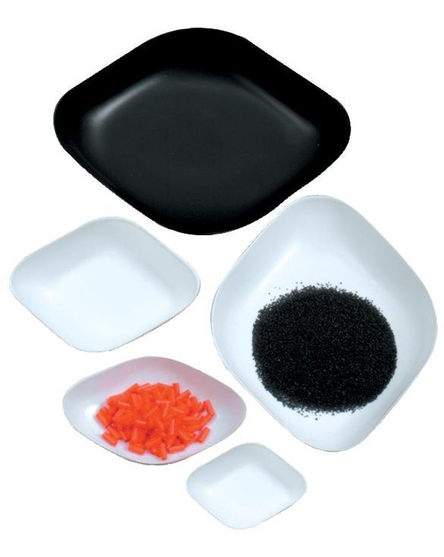 These Diamond-Shaped Weighing Boats feature smooth, flat surfaces and easy-pour spouts to ensure accurate handling of all samples. They also have rounded corners to simplify the transfer of these samples. Each weigh boat is made out of durable polystyrene and can be easily disposed of after a single use. Now available in a variety of sizes. Sold in packs of 500.