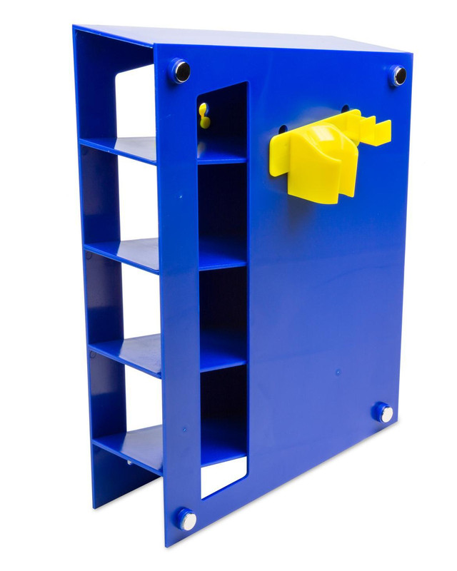 Protects and organizes glass and plastic pipettes up to 50 mL. The four angled-shelf compartments accommodate 0.1 to 50 mL pipettes, keeping them accessible while reducing damage and clutter.