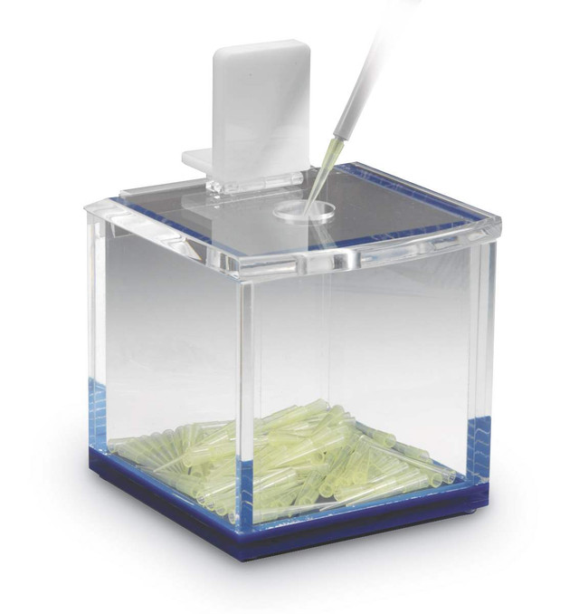 Convenient for one-handed disposal of used pipette tips. Eliminates any need to handle pipette tips used with hazardous fluids