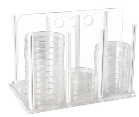 These racks are specifically designed to hold multiple petri dishes efficiently, ensuring proper arrangement during inoculation, incubation, and storage. The 360° visibility allows easy monitoring of cultures without disturbing the setup.