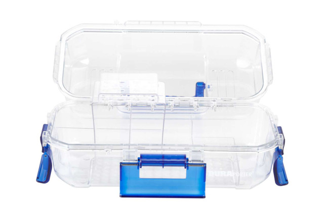 This portable transport case has superior durability, being constructed of polycarbonate material that helps to protect the components inside while on the move and if the unit is dropped. Even in unfavorable weather conditions, samples remain safe as the transport case includes a silicone water-tight seal and three lid clasps. This product is great for storing various laboratory equipment and samples.