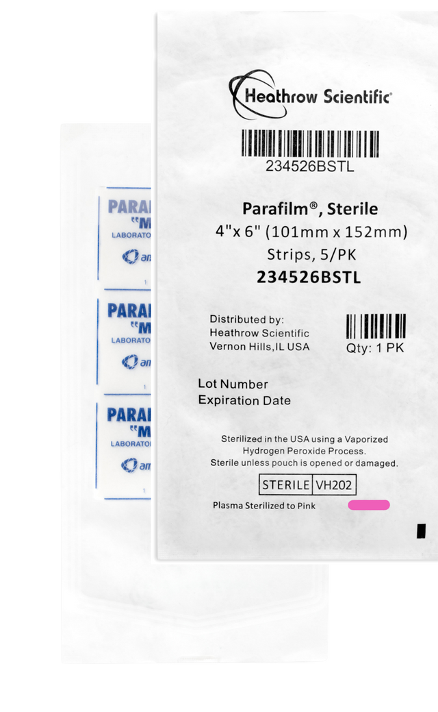 Parafilm is a flexible, semi-transparent thermoplastic film designed for reliable sealing in laboratory, medical, and industrial environments. Engineered from a unique blend of waxes and polyolefins, Parafilm stretches up to 200% of its original size, conforming tightly to irregular surfaces such as test tubes, beakers, petri dishes, and flasks. Each strip comes individually packaged in a sealed, lot-traceable pouch featuring a color sterilization indicator, ensuring both safety and convenience.