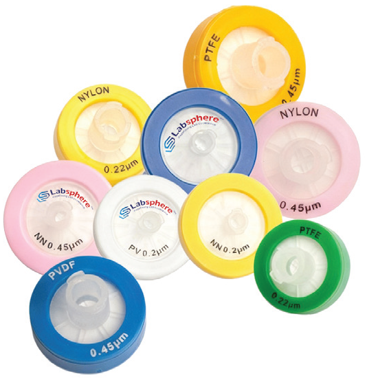 Non-sterile syringe filters with pre-filter for high particulate samples. Available in Nylon, PVDF, PTFE, PES, and CA. Ideal for lab and pharma filtration. Manufactured by Labsphere, Pune, India.