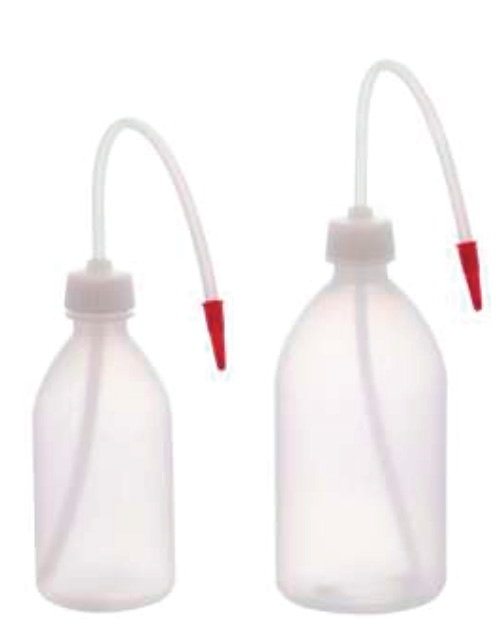 LDPE wash bottles with flexible delivery tube for precise liquid dispensing. Available in multiple sizes. Manufactured by Labsphere, Pune, India.